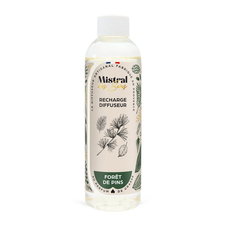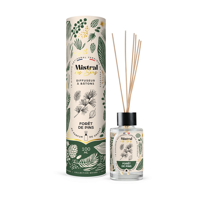 Le Diffuseur Forêt de Pins de Mistral des Sens évoque la fraîcheur vivifiante des balades en forêt grâce à une senteur boisée intense. En format 100 ml, il diffuse pendant 6 à 8 semaines via des bâtons en rotin naturel, avec la possibilité de moduler l’intensité selon le nombre de tiges utilisées. Pour redonner de la vigueur à son parfum, il suffit de retourner les bâtons, et une recharge permet de prolonger l’expérience une fois le flacon vide.